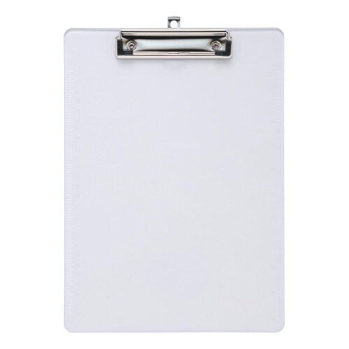 • A4 Clear Plastic Clipboard • Durable plastic A4 clipboard with rounded corners • Pen holder in clip for convenience • Material: Plastic • Brand: 5 Star • Colour: Clear White • Size: A4 • Ideal for sterile environments such as hospital wards |