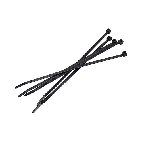 These Avery cable ties are ideal for bundling wires, securing packaging, security tagging and more, and are great for use in retail and industrial environments. The hard-wearing cable ties are high strength and can withstand high heat and harsh conditions. Each cable tie is a one piece, moulded mechanism with no sharp edges for easy handling. These cable ties measure 200 x 4.8mm, with a tensile strength of 22.2kg and a 50mm maximum bundling diameter. This pack contains 100 black cable ties.