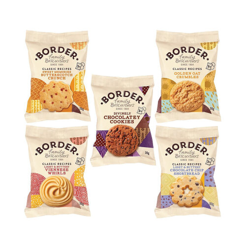 You're here :  Breaktime  /  Drinks & Snacks  /  Biscuit Packs  /  Border Biscuits Mini Packs 5 Varieties Pack of 100 MP100