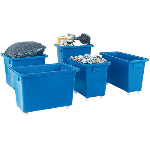 • Blue polyethylene recycling bin