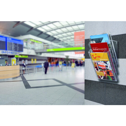 Display Type - Desktop/Wall The Durable literature holder is a free standing desktop with the additional option of wall mounting it also. This highly adaptable brochure holder is ideal for displaying literature and brochures at point of sale and reception areas. |