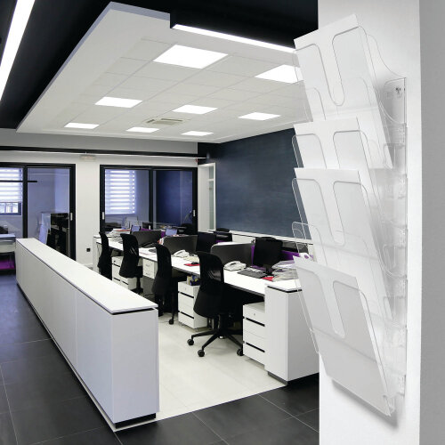 Keep your office or reception area organized and professional with the Durable FLEXIPLUS 6 A4 Clear Literature Holder. Featuring six spacious A4 compartments, this wall-mounted display is perfect for brochures, leaflets, forms, and other printed materials. Made from durable, high-quality materials, it offers long-lasting performance, while the transparent design ensures your documents are always visible and easy to access. Ideal for offices, schools, clinics, and public spaces, this literature holder saves desk space and keeps important documents neatly displayed. Quick and simple to install with included mounting hardware, the FLEXIPLUS holder combines practicality and professional presentation in one trusted solution.