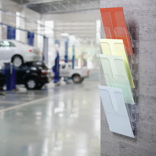 - Durable Flexiplus 6‑Pocket A4 Wall‑Mounted Literature Holder Clear