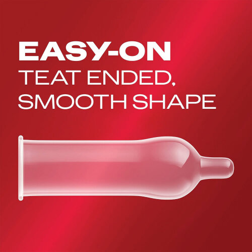 - Extra lubricated, easy-on, shaped condoms