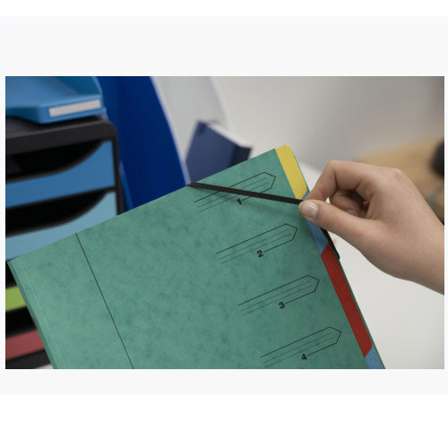 With the Europa 7-Part file, the storage and organisation of your loose leaves of paper becomes easy, without the need to hole punch and store your products in a ring binder. This product is made from durable pressboard and allows you to separate your loose papers into 7 different areas for easy classification. With an elasticated closure, this file protects your documents from loss and ensures that loose sheets stay filed.