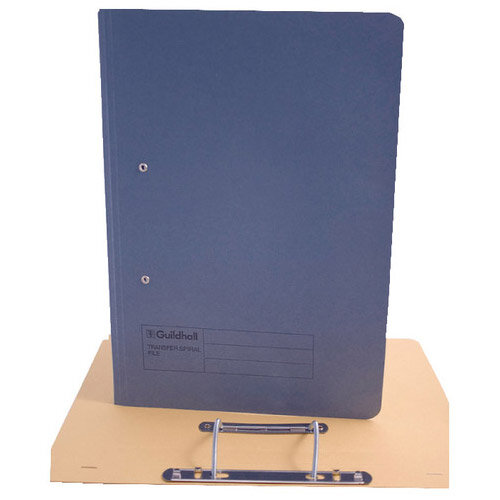 Transfer Files for filing punched papers. Transfer spring mechanism allows easy insertion and removal of papers from the file. Foolscap - 38mm capacity. Heavyweight 285gsm manilla. Colour - Blue This product is perfect if you want to create filing that can be quickly adapted to suit your needs. Providing you with an easy way to remove and insert documents, changing your filing has never been easier. The manila construction of this product means that you can be sure that the file will retain its longevity and protect your information from a wide range of threats. Available in a selection of colours, this is perfect for a colour coded filing system. With a capacity of 38mm, each of these blue files holds up to approx 350 sheets.