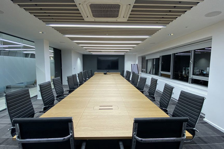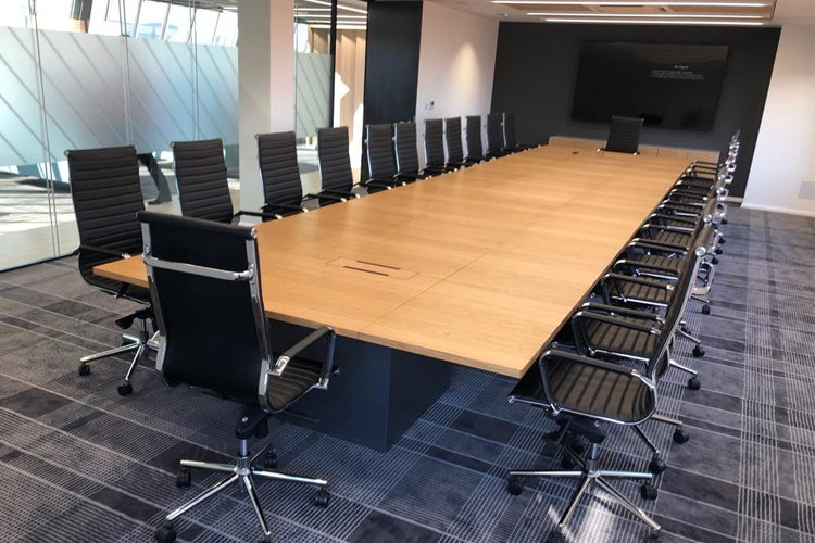 Project: Mazars Ireland Office Project Details: Mazars (Ireland) is a leading professional services firm specialising in audit and assurance, consultancy, corporate finance and tax. Hunt Office Interiors were asked to supply and install new office furniture and seating for their 120 + staff over 4 floors of their newly refurbished offices in Harcourt Street, Dublin. Scope of Works: The project spanned 12 weeks and included 120 x new cable managed bench desks, operator chairs, storage systems, privacy screens, high collaboration tables and stools with built in power; as well as a bespoke designed boardroom table finished in oak veneer which can be easily re-configured and moved within the room along with stylish leather boardroom chairs. We also supplied a bespoke desk set and high sided soft furnishings for the executive 6th floor area as well Bespoke tables & bench seating for the main staff canteen.
