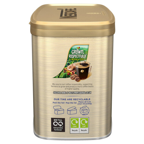 Nescafé Gold Blend Instant Decaf Coffee is made of specially selected beans, golden roasted, ground and freeze-dried to capture the pure smooth taste and aroma of freshly brewed coffee. Nescafe Gold Blend is made from a 100% coffee blend of Arabica and Robusta coffee beans. It has no additives, fillers or any other ingredients. With its smoother flavour and richer aroma, Nescafé Gold Blend coffee is the ideal coffee for making the most of your coffee break. For your convenience Nescafé Coffee is now available to buy online. By buying Nescafé Coffee you become a part of The Nescafé Plan - global initiative that supports responsible farming, production and consumption.