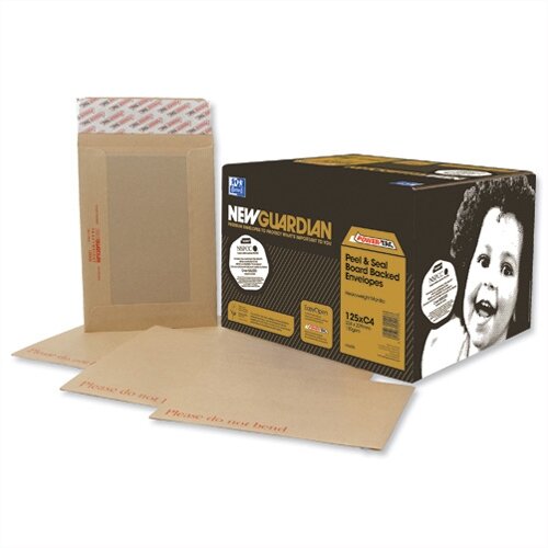New Guardian Window Board Backed Envelopes C4 Peel and Seal Manilla Pack 125