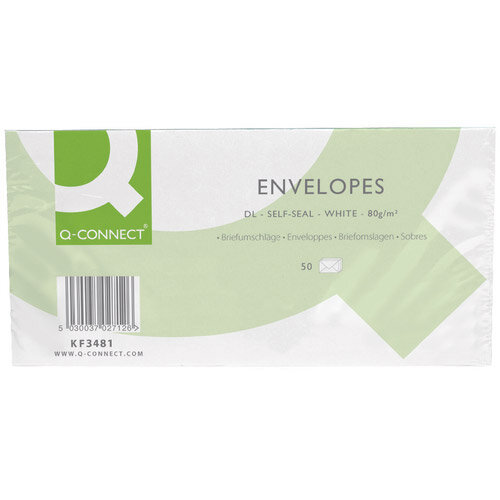 - Q-Connect Envelope DL 80gsm White Self-Seal 20 Pack of 50 Envelopes KF02712