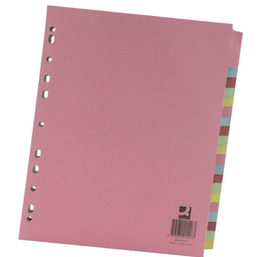 - Q-Connect 20-Part Subject Divider, A4, Multipunched, Assorted Colours - Ideal for Organising Large Projects