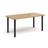 Radial End Meeting Table W2400xD1000xH725mm With 6 Black Radial Legs - Oak